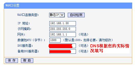 2、我們將第二層路由器B的WAN口IP地址設(shè)置為192.168.1.50 ,LAN口IP地址設(shè)置為192.168.2.1 。