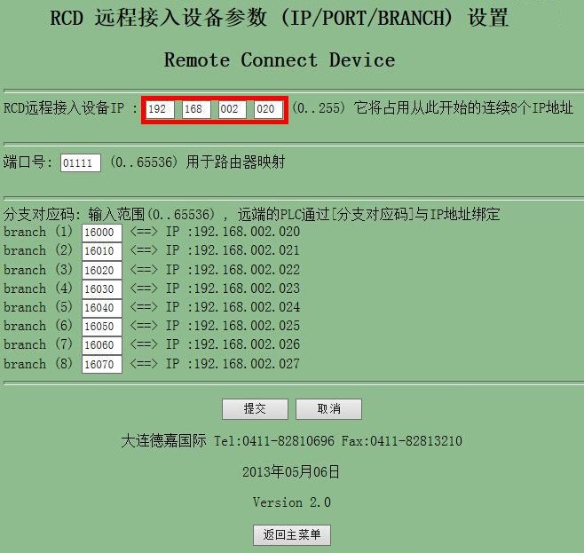 3、我們將互聯(lián)網(wǎng)遠(yuǎn)程模塊RCD的IP地址設(shè)置為192.168.2.20,如下圖所示: